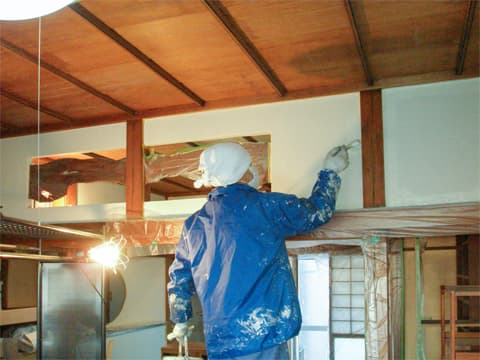 パネルのつなぎ目が目立たないように、左官で表面を平らにします。