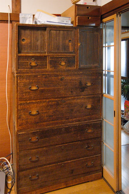 お部屋の一角には可愛いレトロなタンスが置かれています。洋室に和のエッセンスを加えながら、空間に馴染み、とても素敵に見えますね。