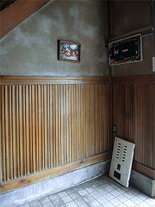 建築当時のじゅらく壁や天井に傷みが見られた玄関。懐かしい雰囲気を残したまま、明るい印象に生まれ変わりました。