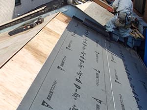 前回のリフォームでは見送りましたが、今後長く住むことを考えて、軽い屋根に葺き替え、建物の耐震性をアップさせます。 屋根材は軽量なアスファルトシングルに変え、瓦の1/5程度の重さになります。