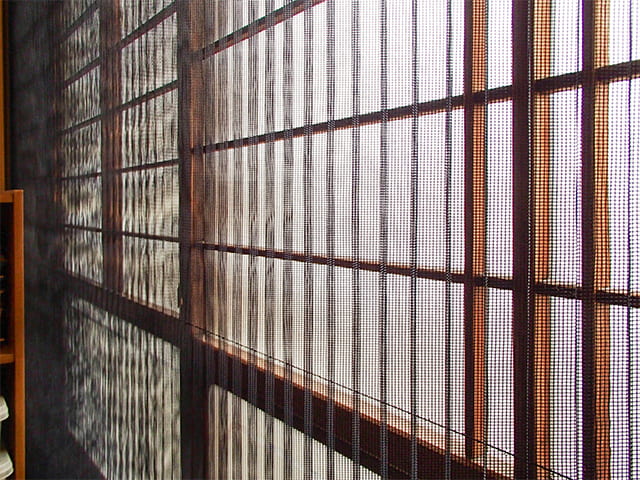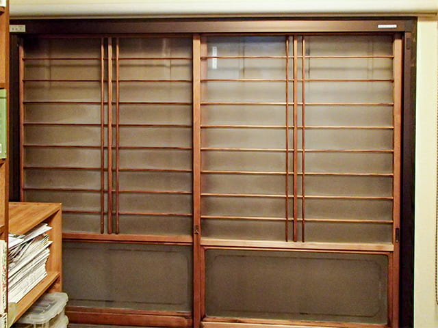 夏は窓を開けると涼しい風が通り抜けますが、同時に虫も入ってきてしまいます。 網戸を設置したいというご要望に応えて、アコーディオンタイプの網戸を設置しました。