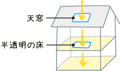 天窓は半透明の床の真上に設置したので、天窓からの光が2階を通って1階まで届くようになりました。 どこにいても明るいお住まいへと変身です。