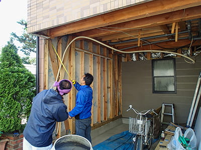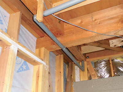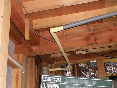新しく耐力壁を立てる位置に、天井裏から給水管が通っていました。