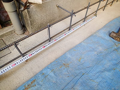 建築基準法で定められた太さの鉄筋を、定められた間隔で正しく配置しました。