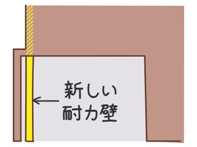 耐力壁を新設して、上階と壁の位置を合わせることで、しっかり上階の重さを支えられるようにします。