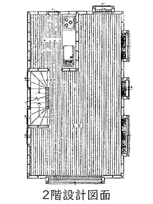 設計図面では部屋が長方形ですが、実際の建物では、2階の一部がせり出した形になっています。 建築段階で変更を加えたのではないかと思われました。